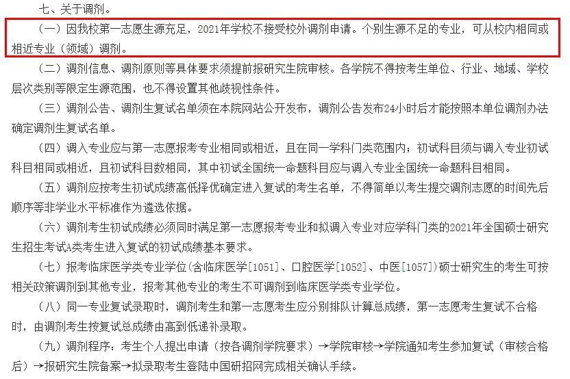 因我校第一志愿生源充足, 2021年學(xué)校不接受校外調(diào)劑申請。個(gè)別生源不足的專業(yè),可從校內(nèi)相同或相近專業(yè)(領(lǐng)域)調(diào)劑。