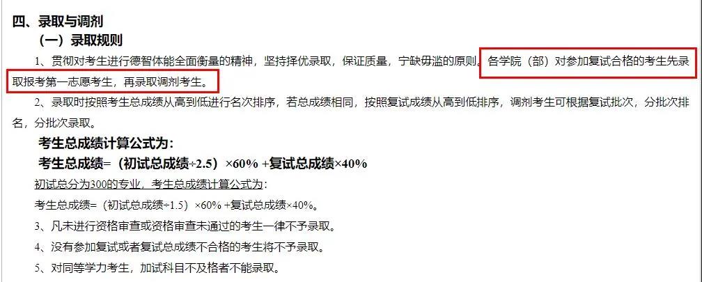 錄取優(yōu)先級為第一志愿上線復(fù)試合格考生>調(diào)劑復(fù)試合格考生,依據(jù)總成績分別排序。在考慮優(yōu)先級的基礎(chǔ)上,嚴(yán)格按復(fù)試合格考生總成績排名擇優(yōu)錄取。