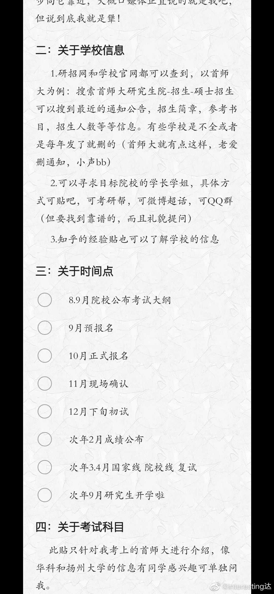 學校信息、考研重要時間點、考試科目、是否報班,學姐都解答了哦: