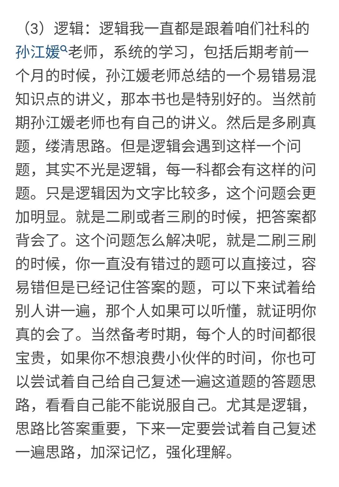 邏輯:跟隨孫江媛老師系統(tǒng)學(xué)習(xí),后期推薦其易錯易混知識點的講義,注意提取錯題本,反復(fù)記憶復(fù)述,形成自己的答題思路,加深記憶,強(qiáng)化理解。