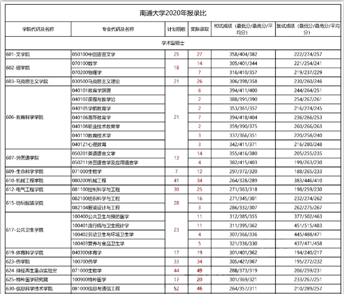 考研報錄比:南通大學(xué)2020年碩士研究生招生報錄比