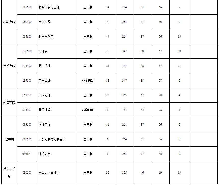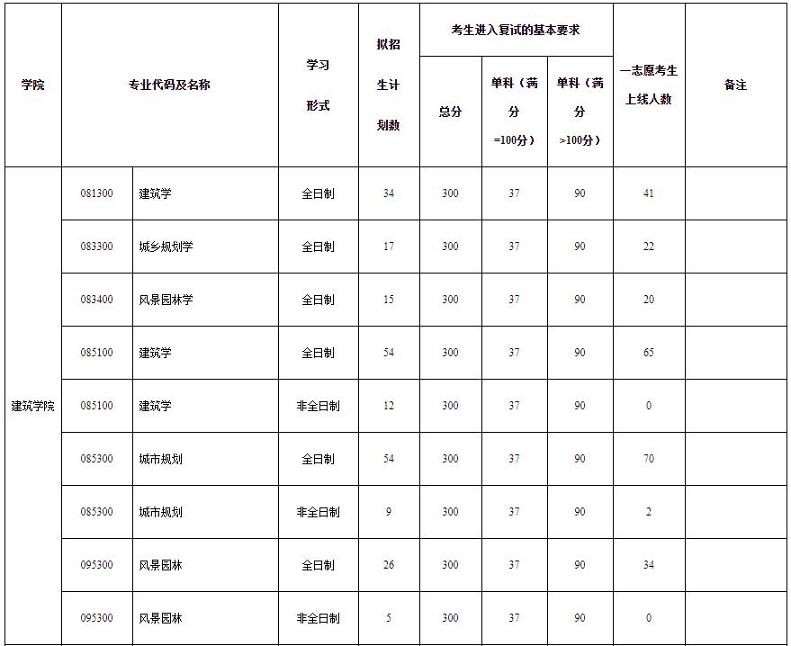 各專業(yè)復(fù)試分數(shù)線(含退役大學(xué)生士兵專項計劃)、擬招生計劃數(shù)及一志愿考生上線人數(shù)詳見下表,具體一志愿考生上線名單由各學(xué)院另行公布。