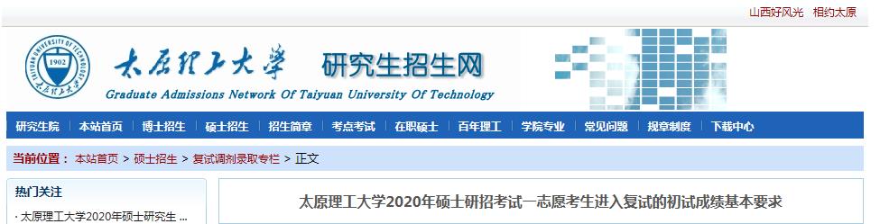 分數(shù)線,太原理工大學也公布了2020年碩士研究生招生復試