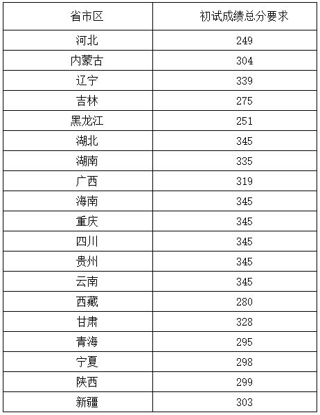 初試成績須達到2021年全國碩士研究生招生考試A類地區(qū)考生進入復(fù)試的初試成績基本要求(國家線)