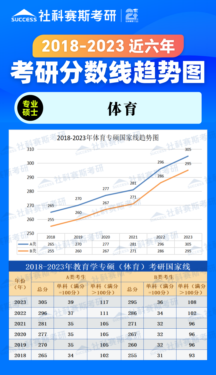 2023考研分?jǐn)?shù)線:2018-2023年體育專碩近六年考研分?jǐn)?shù)線趨勢(shì)圖