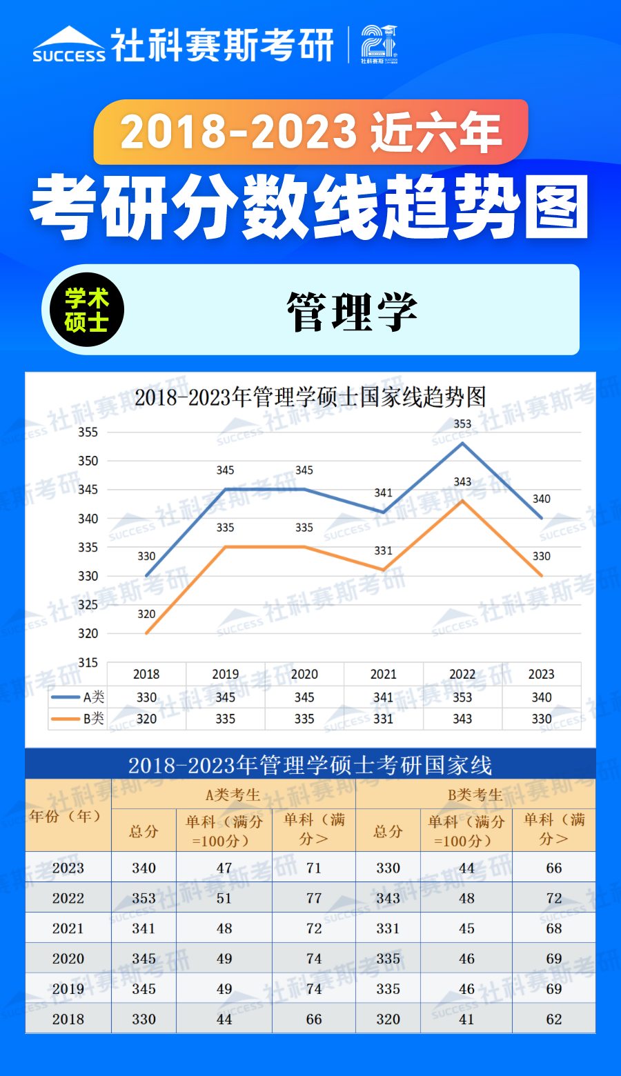 2023考研分數(shù)線:2018-2023年管理學專業(yè)近六年考研分數(shù)線趨勢圖