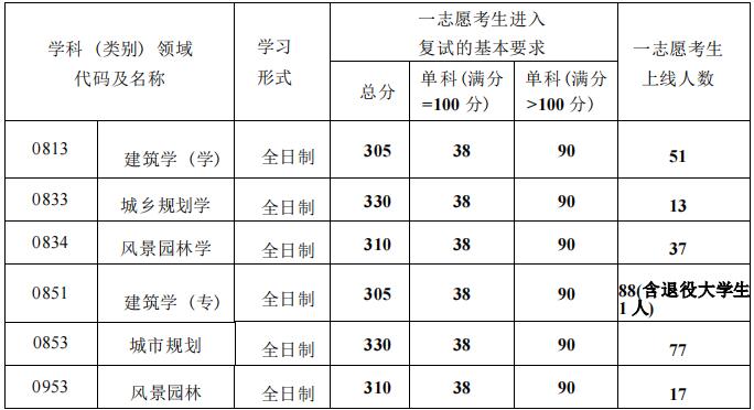 注:1.退役大學(xué)生進(jìn)入復(fù)試要求為:總分248分,單科 (滿分=100 分) 33分,單科 (滿分>100 分)52分。