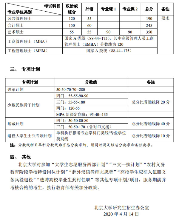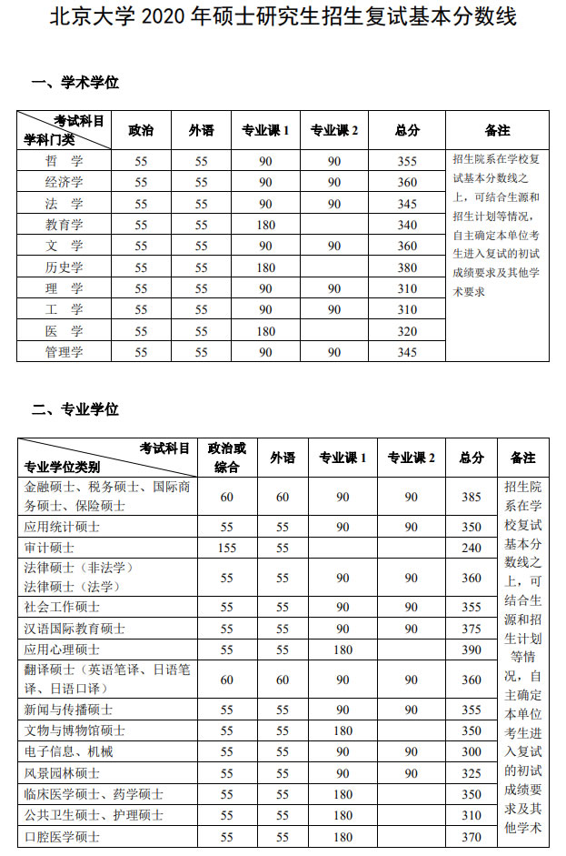 2020考研34所自主劃線分?jǐn)?shù)線:北京大學(xué)2020年碩士研究生招生復(fù)試基本分?jǐn)?shù)線