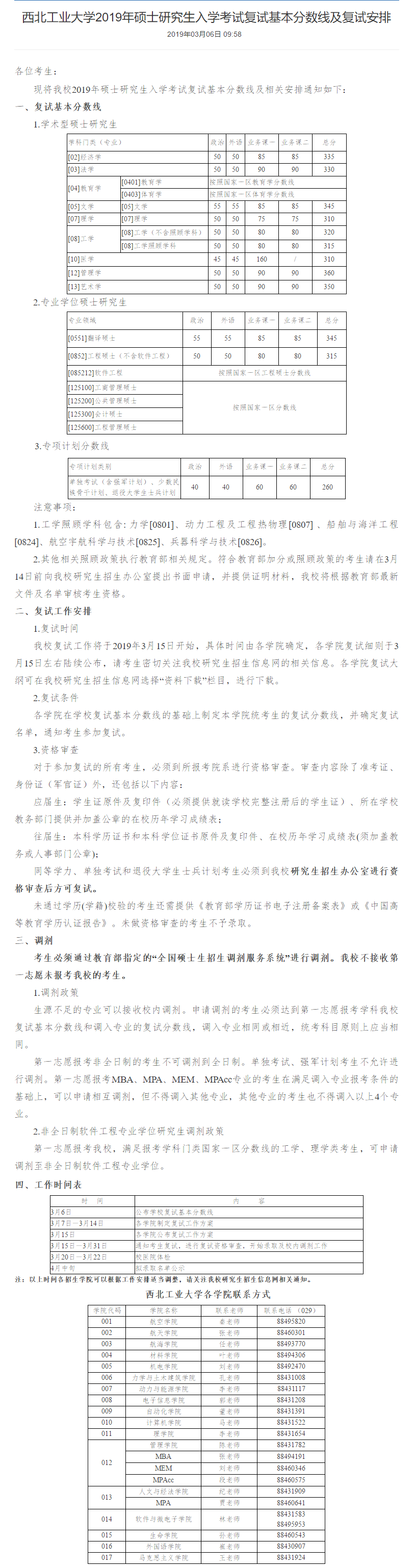 西北工業(yè)大學2019年碩士研究生入學考試復試基本分數(shù)線