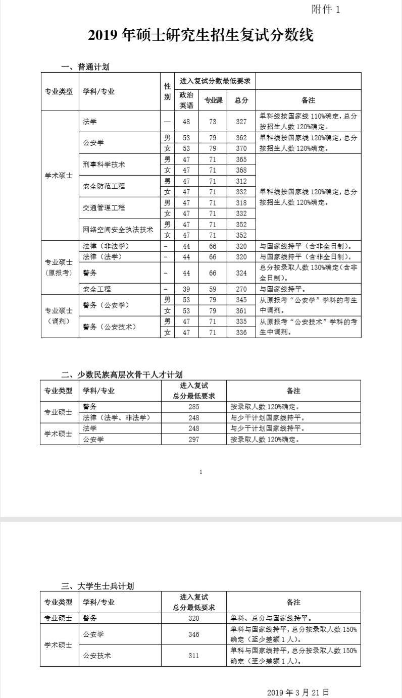 以上就是為考生整理的“中國(guó)人民公安大學(xué)2019年考研復(fù)試分?jǐn)?shù)線”的相關(guān)內(nèi)容,點(diǎn)擊查看:全國(guó)各省市院校2019年考研復(fù)試分?jǐn)?shù)線匯總 ,希望對(duì)2020考研的同學(xué)們有所幫助,考研的小伙伴們要加油哦—— 更多復(fù)試分?jǐn)?shù)線內(nèi)容盡在“分?jǐn)?shù)線”欄目!