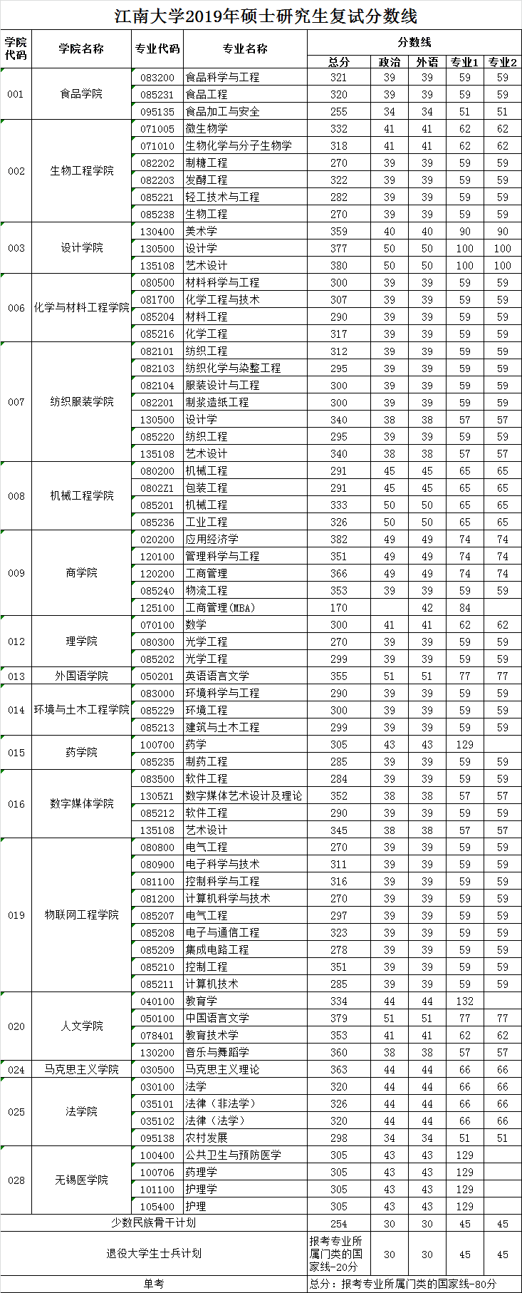 江南大學(xué)2019年考研復(fù)試分?jǐn)?shù)線