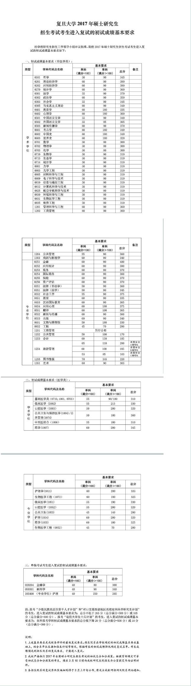 2017年復(fù)旦大學(xué)自主劃線初試成績(jī)