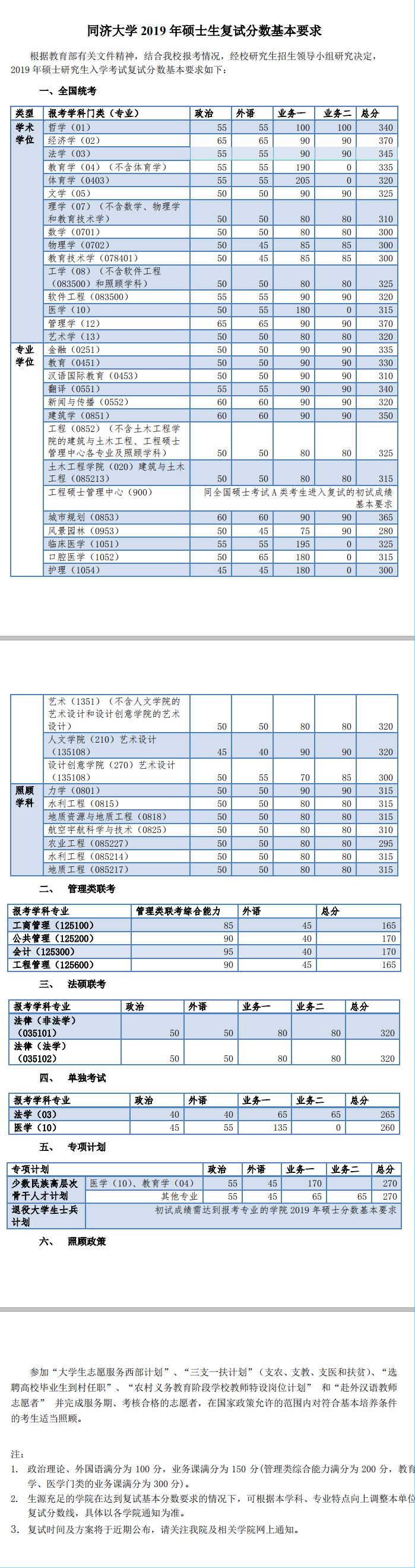 2019年同濟(jì)大學(xué)自主劃線初試成績(jī)