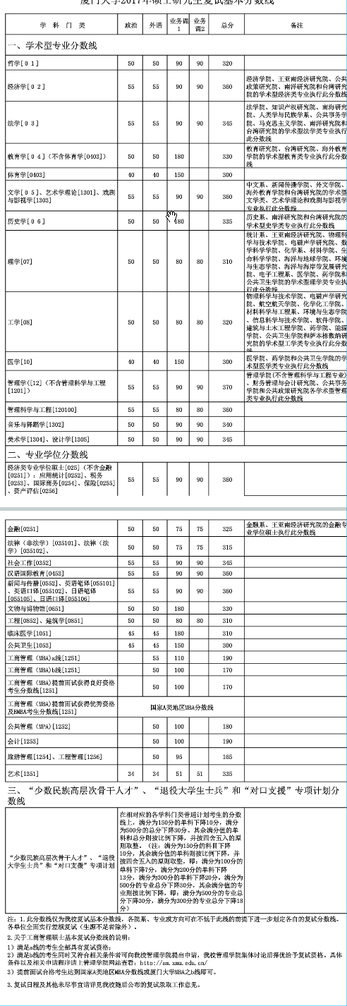 | 歷史學(xué)[06] | 50 | 50 | 180 | 335 | 歷史系、南洋研究院和臺(tái)灣研究院的學(xué)術(shù)型史學(xué)類專業(yè)執(zhí)行此分?jǐn)?shù)線 | |||