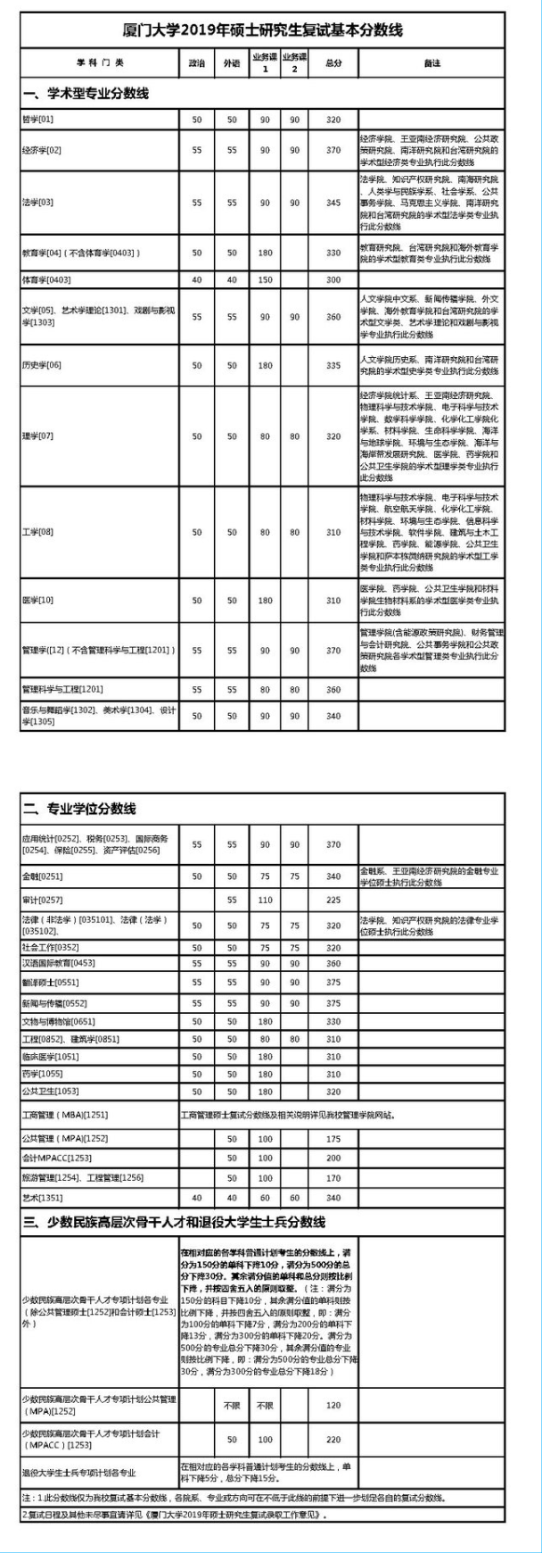 2019年廈門大學(xué)自主劃線初試成績(jī)