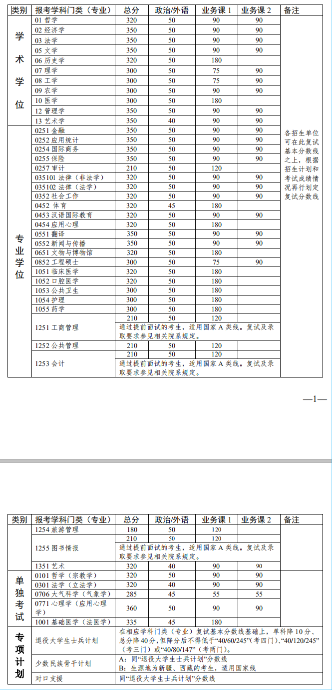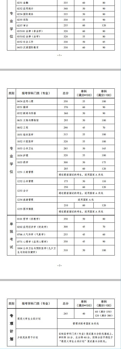 | 少數(shù)民族骨干計(jì)劃 | 在相應(yīng)學(xué)科門類(專業(yè))復(fù)試基本分?jǐn)?shù)線基礎(chǔ)上,單科降10分、總分降40分(不得低于國家線)。 | |||