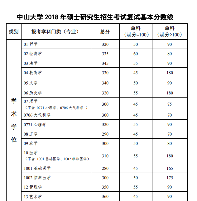 | 類別 | 報(bào)考學(xué)科門類(專業(yè)) | 總分 | 單科 (滿分=100) | 單科 (滿分>100) |