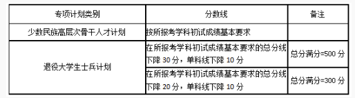 三、專項(xiàng)計(jì)劃考生的初試成績(jī)基本要求: