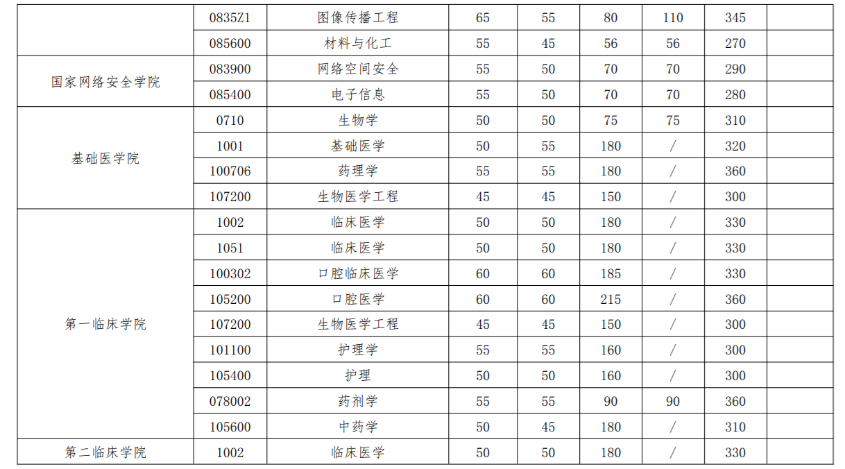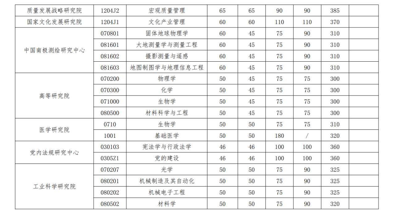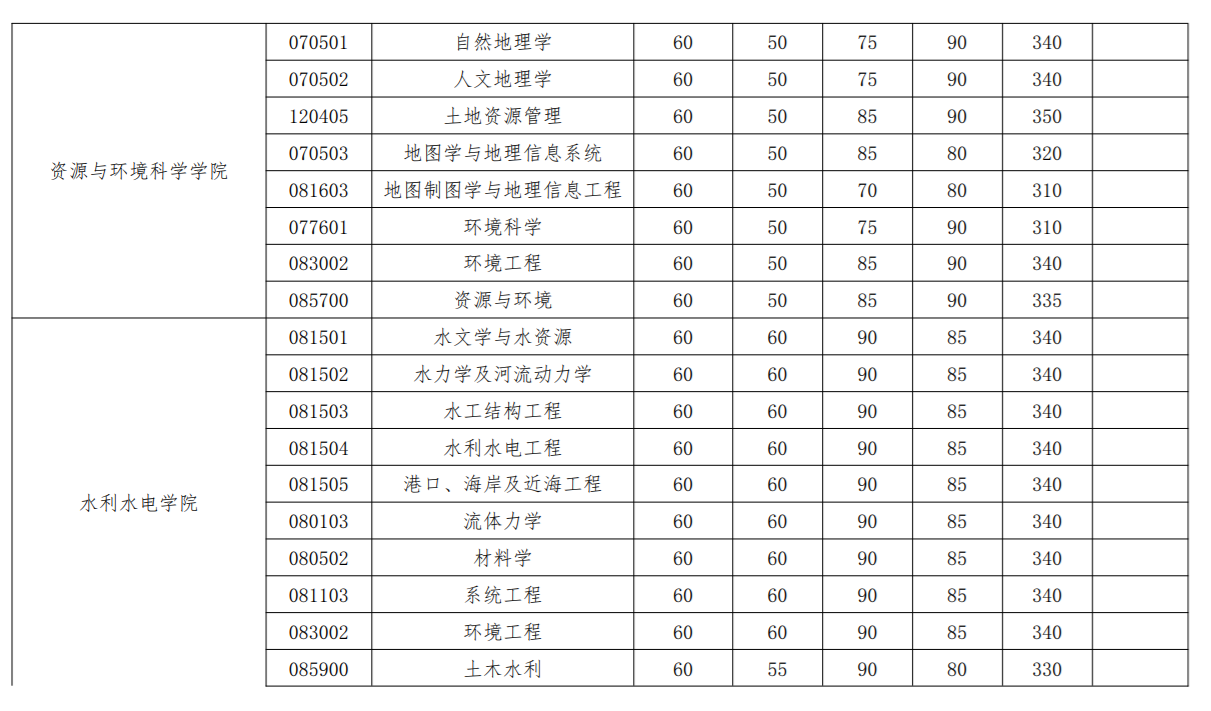 繼2020考研國家線公布后,34所自主劃線院校和各大院校也陸續(xù)公布2020年復試分數(shù)線。武漢大學已經(jīng)公布2020年碩士研究生入學考試復試基本分數(shù)線,如下所示: