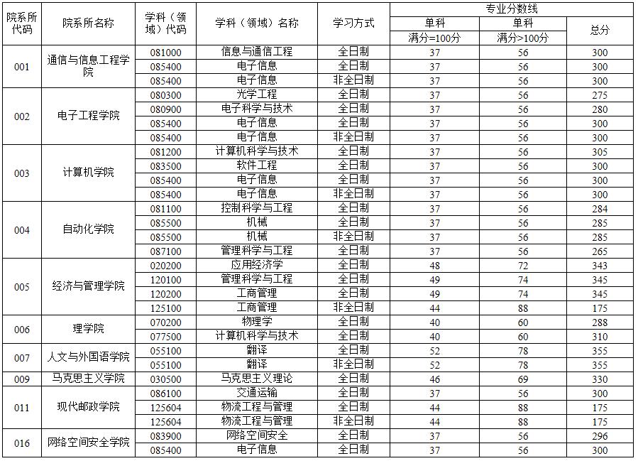 西安郵電大學(xué)2020年碩士研究生招生進入復(fù)試的初試成績基本要求