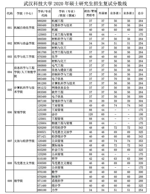 分數(shù)線,武漢科技大學也公布了2020年碩士研究生招生復試