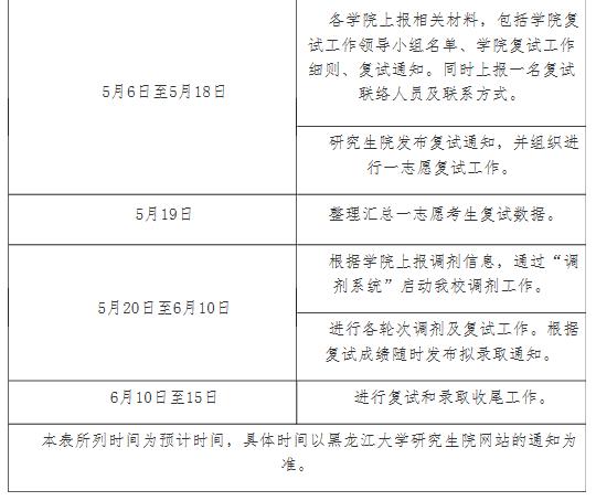 根據(jù)教育部和黑龍江省招生考試委員會(huì)關(guān)于研究生招生考試時(shí)間安排,我校初步確定于5月9日至5月18日進(jìn)行一志愿考生復(fù)試,5月20日至6月10日進(jìn)行調(diào)劑考生復(fù)試。