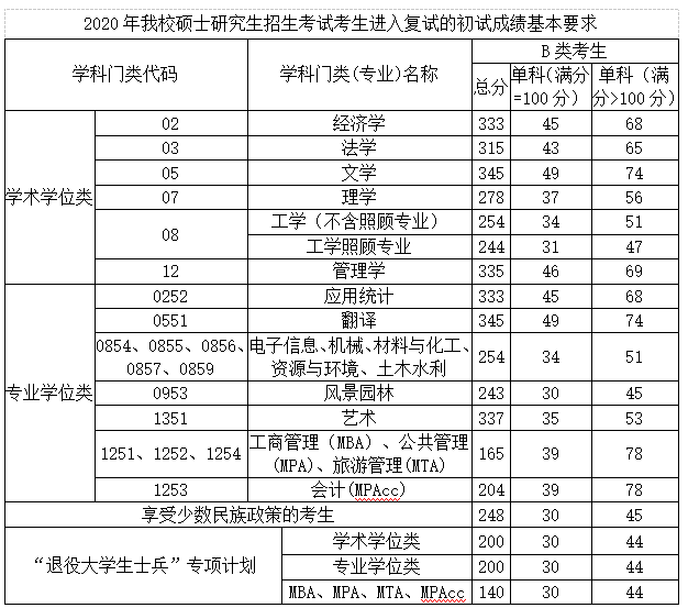 2020年全國碩士研究生統(tǒng)一入學(xué)考試考生進(jìn)入復(fù)試的初試成績基本要求現(xiàn)已公布,為保證我校調(diào)劑和復(fù)試工作順利開展,現(xiàn)就有關(guān)事項(xiàng)公告如下: