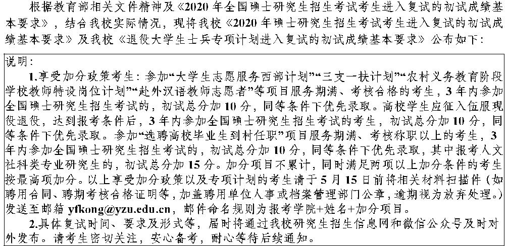 分?jǐn)?shù)線,揚州大學(xué)也公布了2020年碩士研究生招生復(fù)試