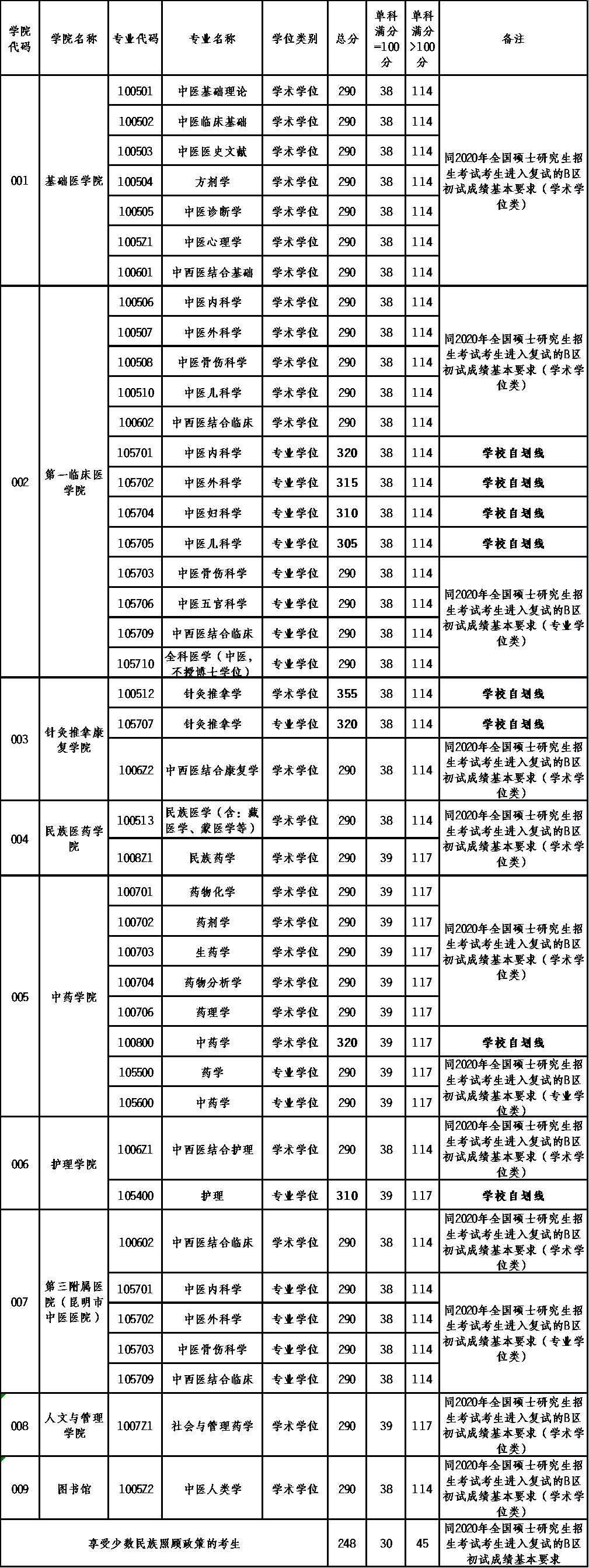 分?jǐn)?shù)線,云南中醫(yī)藥大學(xué)也公布了2020年碩士研究生招生復(fù)試
