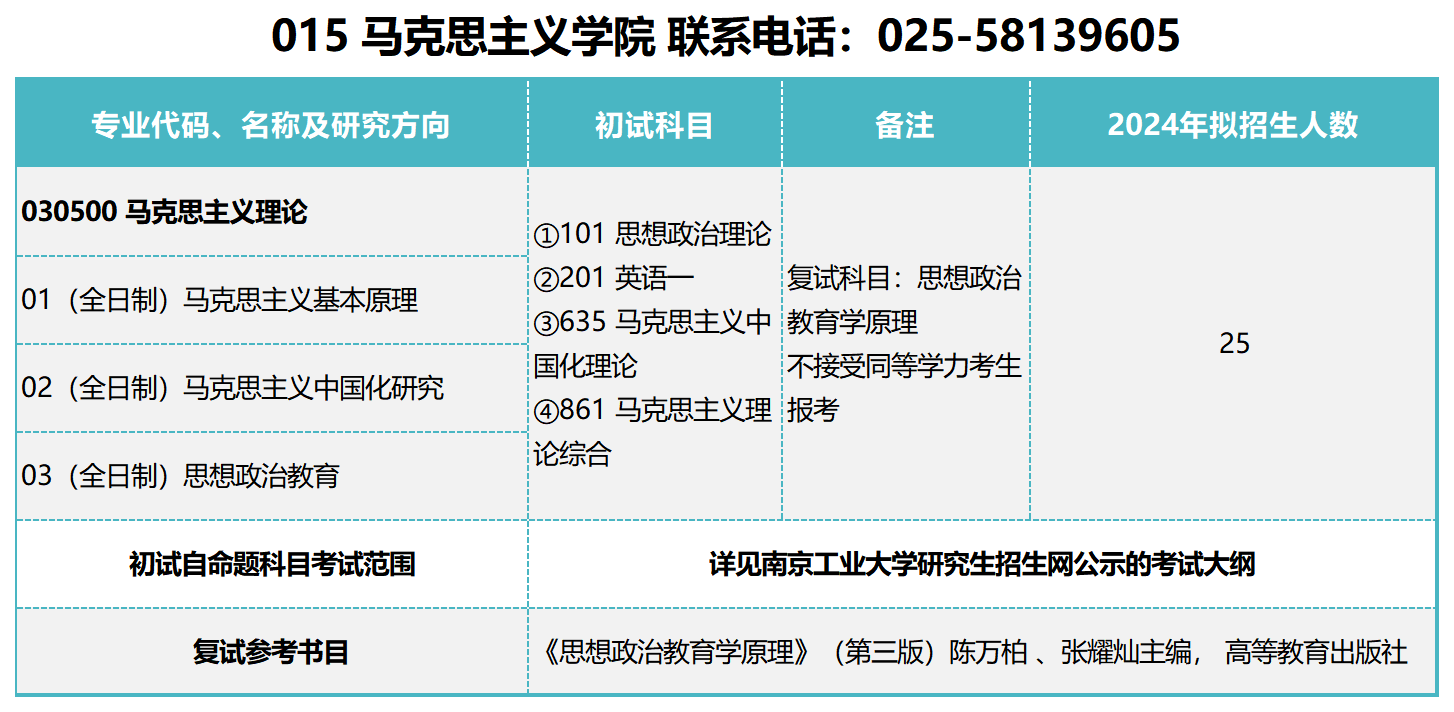 以上就是“2024考研參考書目:南京工業(yè)大學馬克思主義學院2024年碩士研究生招生參考書目”的內(nèi)容,更多考研信息,請持續(xù)關注本網(wǎng)站。