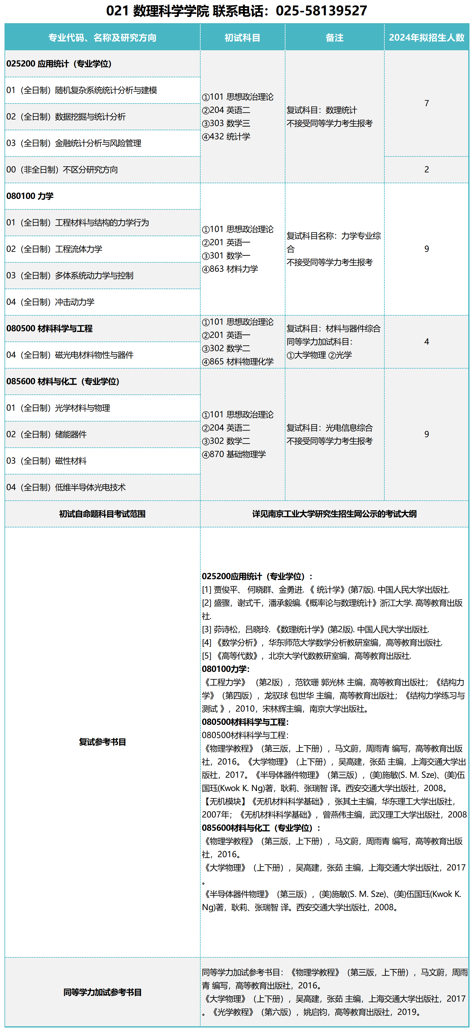 以上就是“2024考研參考書目:南京工業(yè)大學(xué)數(shù)理科學(xué)學(xué)院2024年碩士研究生招生參考書目”的內(nèi)容,更多考研信息,請持續(xù)關(guān)注本網(wǎng)站。