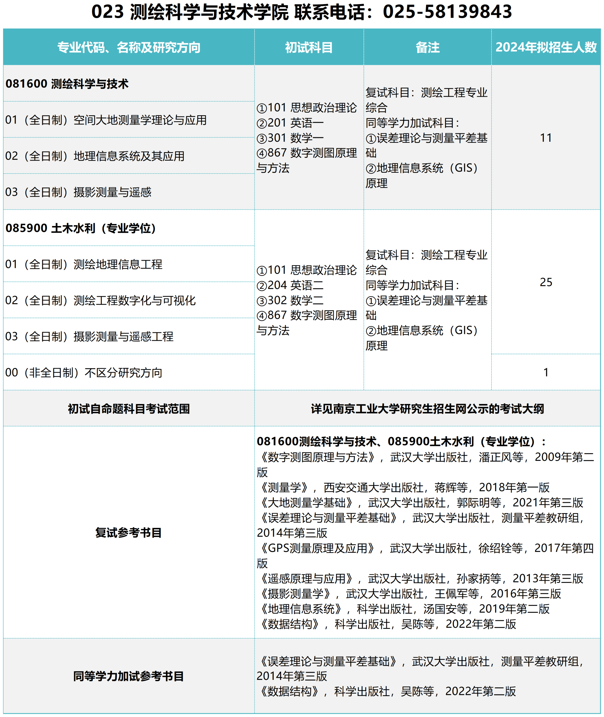 以上就是“2024考研參考書目:南京工業(yè)大學(xué)測繪科學(xué)與技術(shù)學(xué)院2024年碩士研究生招生參考書目”的內(nèi)容,更多考研信息,請持續(xù)關(guān)注本網(wǎng)站。