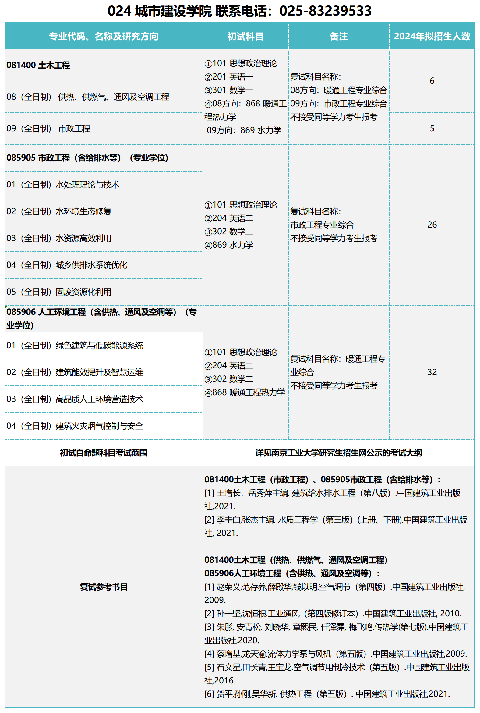 以上就是“2024考研參考書目:南京工業(yè)大學(xué)城市建設(shè)學(xué)院2024年碩士研究生招生參考書目”的內(nèi)容,更多考研信息,請(qǐng)持續(xù)關(guān)注本網(wǎng)站。
