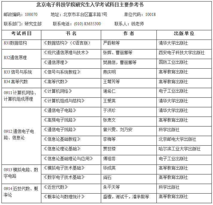 以上就是北京電子科技學(xué)院2020年碩士研究生各考試科目參考書目的全部內(nèi)容!祝你考研成功!