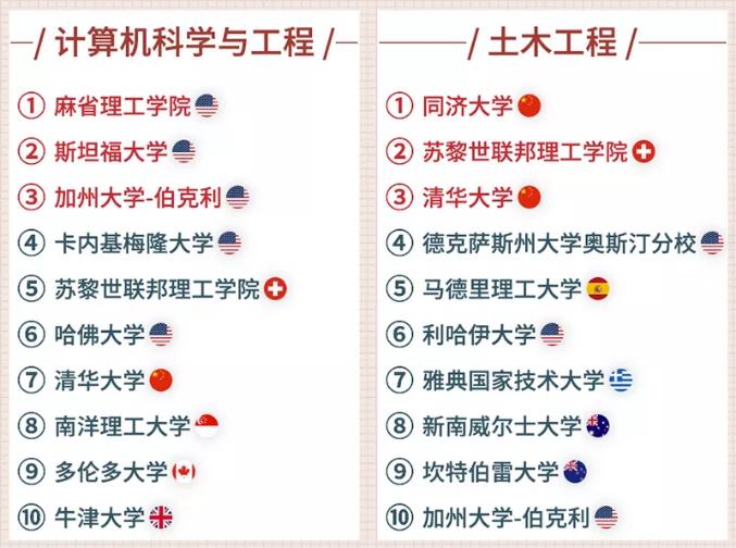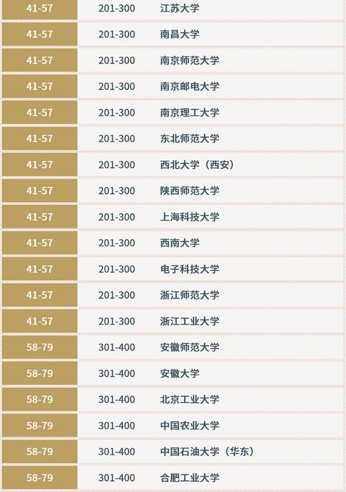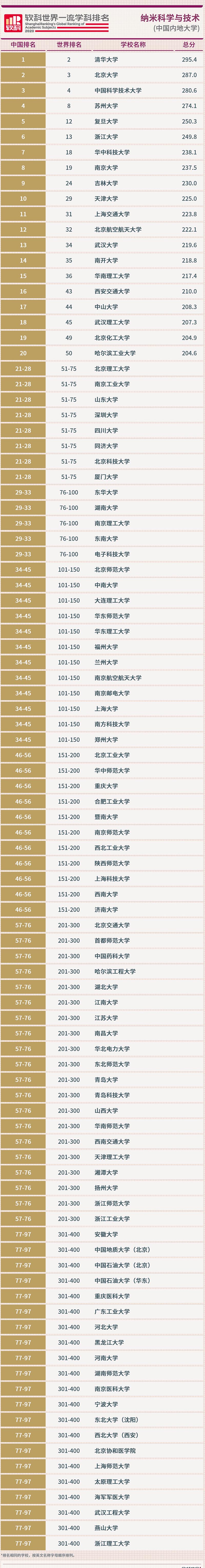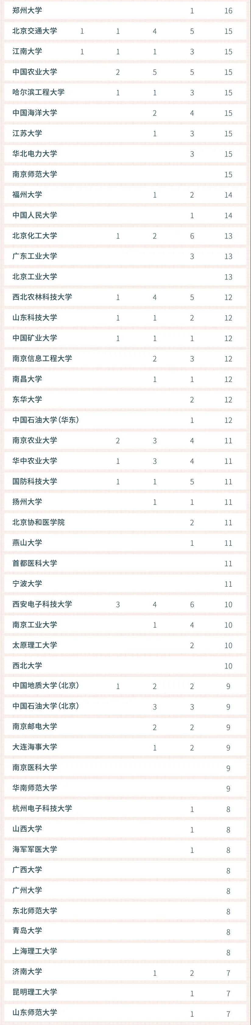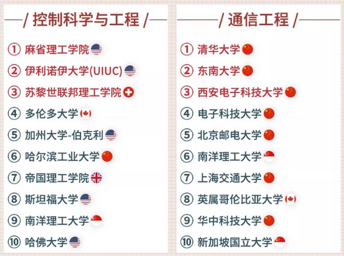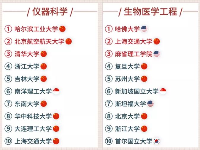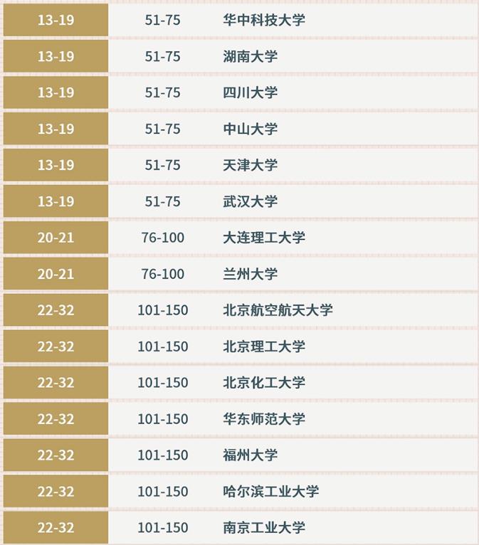 中國內(nèi)地高校在工學領域表現(xiàn)強勢,在18個工學學科的世界五十強中,中國內(nèi)地高校的數(shù)量超過10所,分別是儀器科學(25所)、化學工程(21所)、交通運輸工程(21所)、礦業(yè)工程(21所)、納米科學與技術(20所)、通信工程(19所)、能源科學與工程(17所)、材料科學與工程(16所),船舶與海洋工程(16所)、生物醫(yī)學工程(14所)、遙感技術(14所)、機械工程(13所)、冶金工程(13所)、計算機科學與工程(12所)、控制科學與工程(11所)、食品科學與工程(11所)、土木工程(10所)和航空航天工程(10所)。