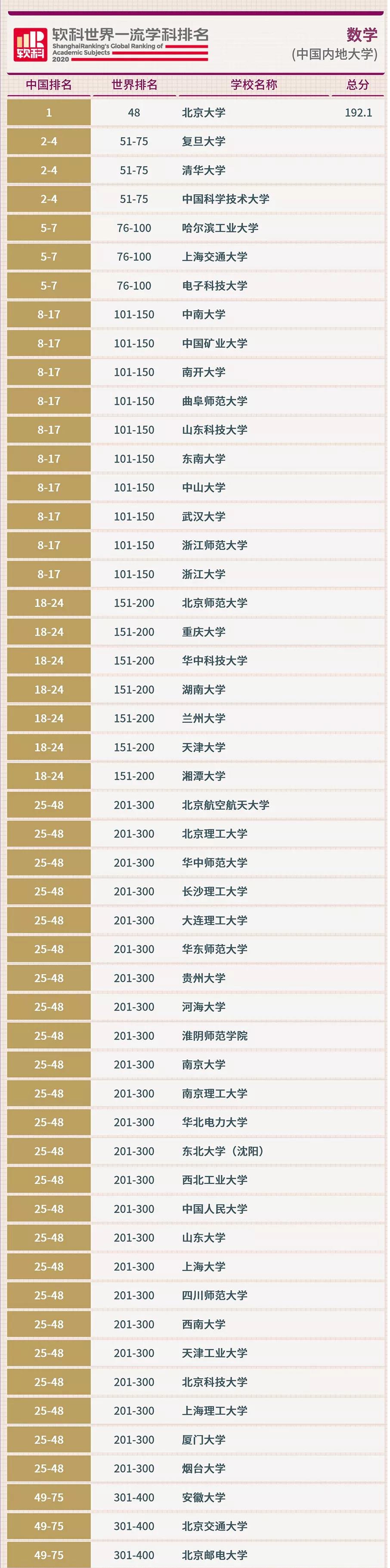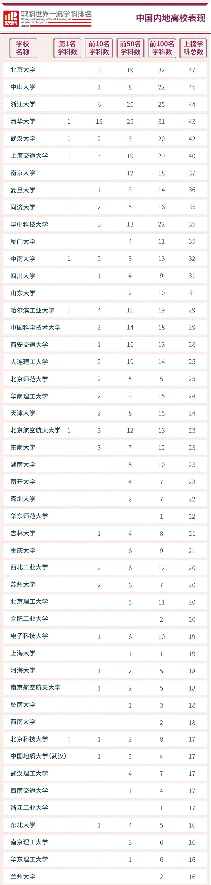2020軟科世界一流學科排名出爐,中國內(nèi)地高校實力強勁!