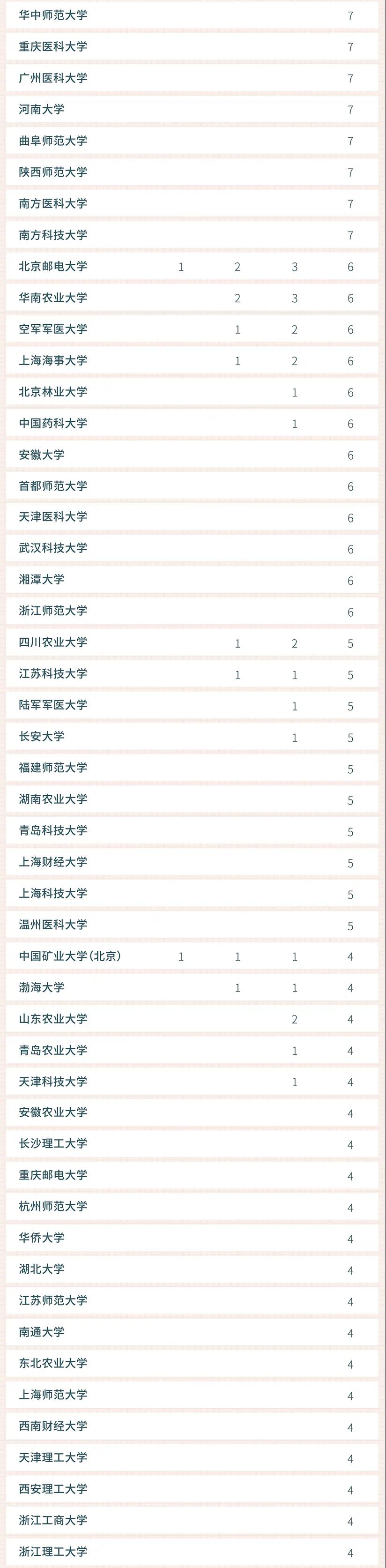 從中國內(nèi)地高校的上榜學科數(shù)量來看,北京大學最多,共計47個學科上榜。中山大學、浙江大學、清華大學武漢大學分別以45次、44次、43次和42次上榜數(shù)分列前五。此外,北京大學有32個學科位列世界百強,也是中國內(nèi)地高校中百強學科數(shù)量最多的高校。值得一提的是,清華大學有13個學科躋身世界前十,是中國內(nèi)地高校中前十名學科最多的高校,上海交通大學浙江大學也分別有7個和6個學科位列世界前十。