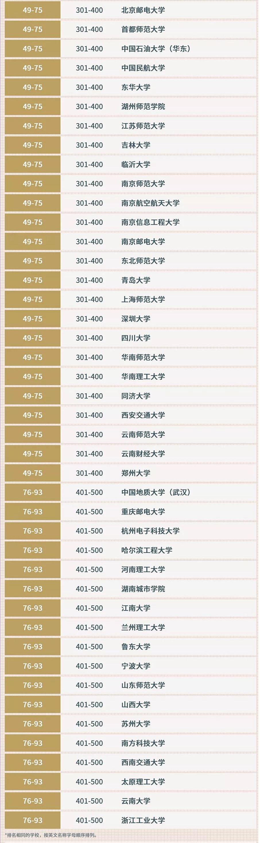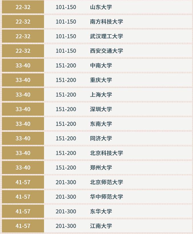 中國內(nèi)地高校排名表現(xiàn)強勁