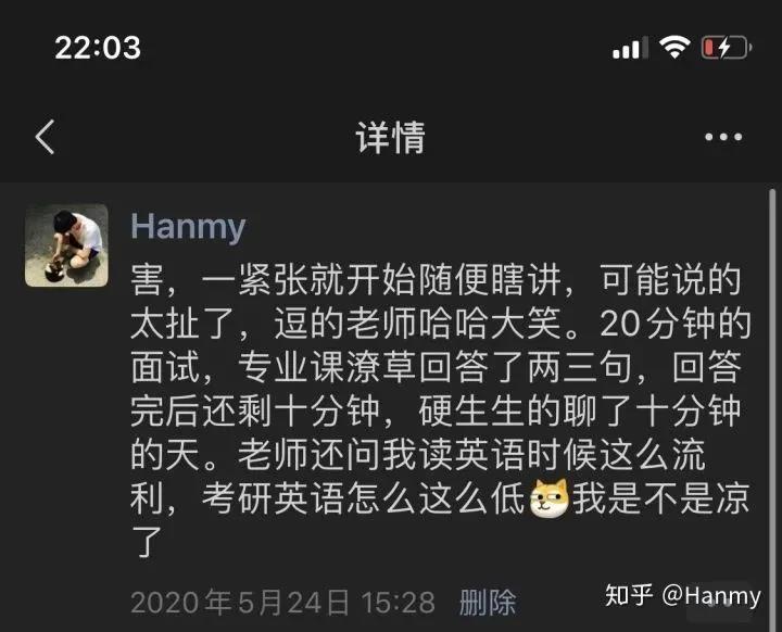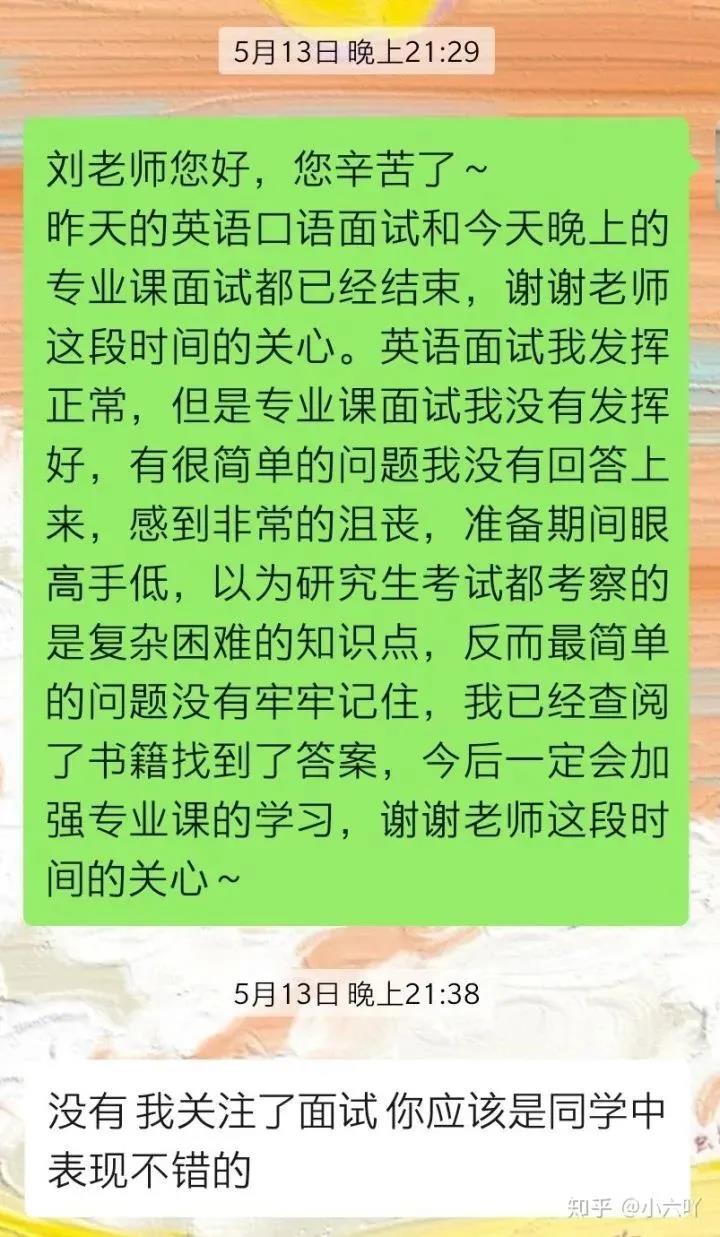 最后老師問英語面試表現(xiàn)與英語初試成績不符,TA回答是考前沒睡好發(fā)揮失利,老師們哈哈大笑。