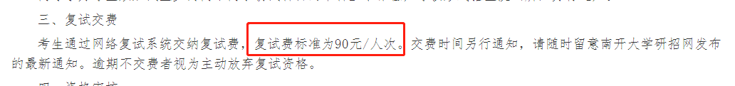 同學(xué)們復(fù)試要交費知道吧?院校的復(fù)試通知里都“明碼標(biāo)價”,還有規(guī)定的時間,如果不繳費就視為自動放棄,所以復(fù)試不提前繳費,那根本沒有參加復(fù)試的資格。