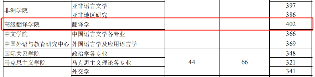 翻譯學(xué)專業(yè)復(fù)試線為402分。