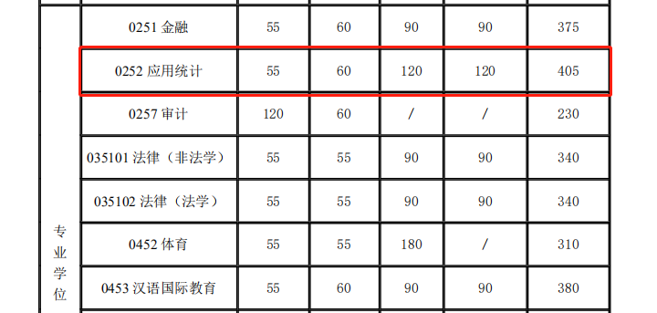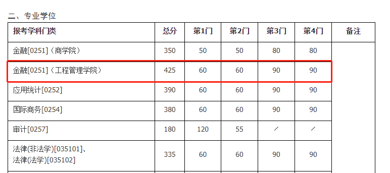 分?jǐn)?shù)線》中:金融專碩的復(fù)試線是405;應(yīng)用統(tǒng)計(專碩)的復(fù)試線是400整;體育專碩的復(fù)試線400整。