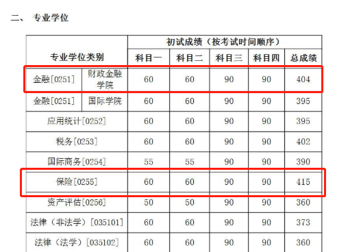 《中國人民大學(xué)2021年碩士研究生招生考試考生進(jìn)入復(fù)試的初試成績基本要求》中,今年其專業(yè)學(xué)位金融-財政金融學(xué)院復(fù)試線為404分;保險專業(yè)為415分。