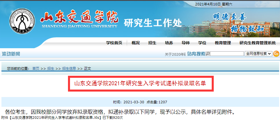 因部分考生放棄及學(xué)校研究生招生計(jì)劃動(dòng)態(tài)調(diào)整,根據(jù)遞補(bǔ)原則(1. 成績(jī)由高至低遞補(bǔ) 2. 復(fù)試結(jié)論為不合格者不予考慮 3. 考生未被其他學(xué)校擬錄?。┈F(xiàn)擬錄取以下同學(xué)。