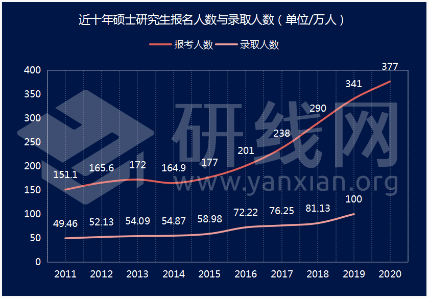 2020年我國(guó)研究生年招生首次突破100萬(wàn)人,錄取人數(shù)達(dá)到110萬(wàn)人,研究生在學(xué)人數(shù)將達(dá)到300萬(wàn)人,已累計(jì)超過(guò)1000萬(wàn)!