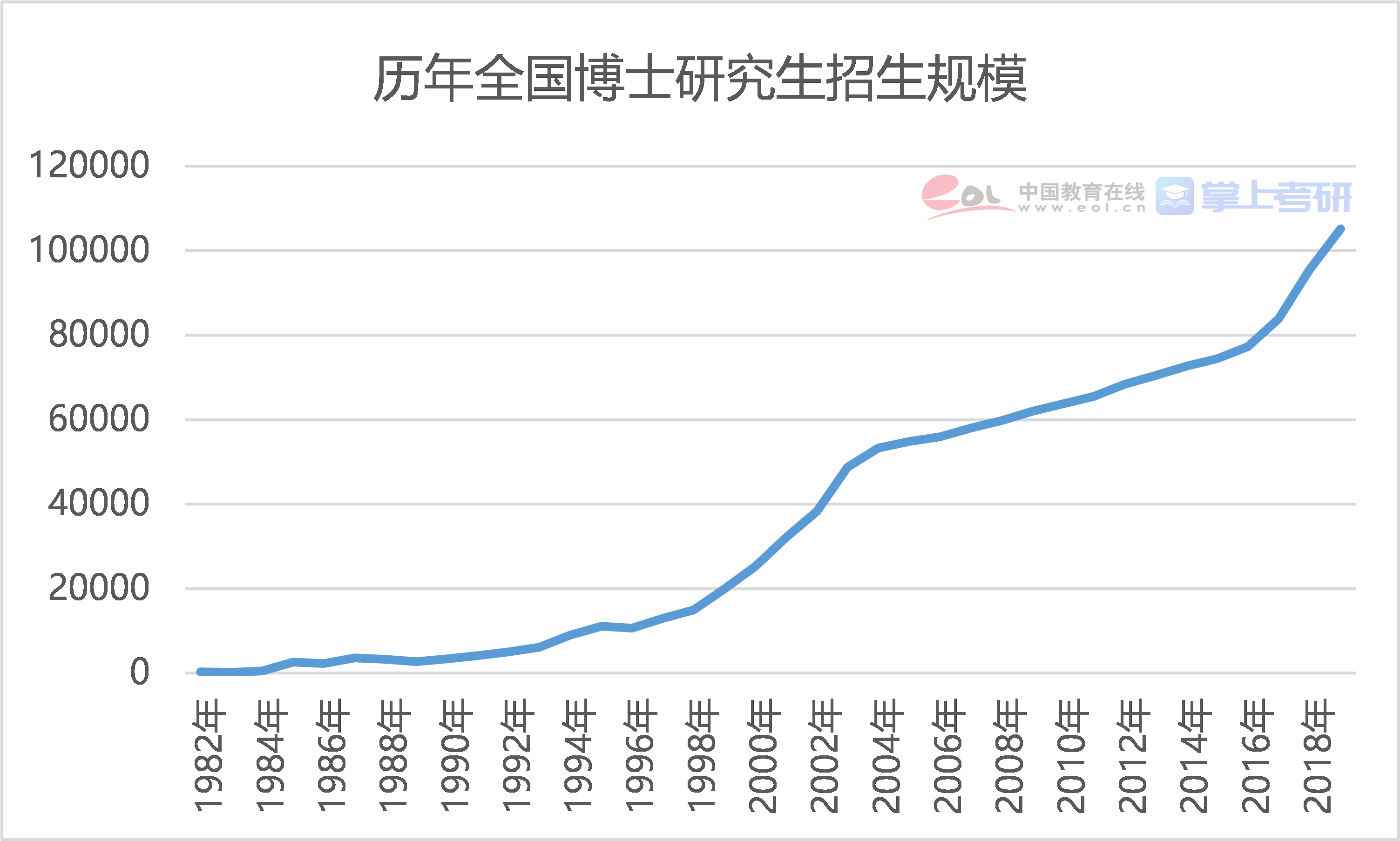 自1981年教育部下達《關于做好1981年攻讀博士學位研究生招生工作的通知》,決定“開始招收博士生”以來,我國博士研究生招生規(guī)模不斷增長,目前每年招生規(guī)模已突破10萬大關,并保持繼續(xù)快速增長的趨勢。