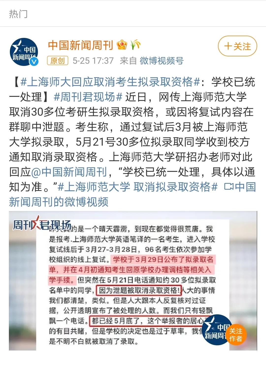 5月21日,上海師范大學接到舉報,致電取消了30多名考生的入學資格,導致考生強烈不滿發(fā)文網上求助。一起來看~