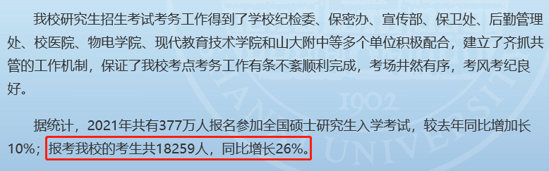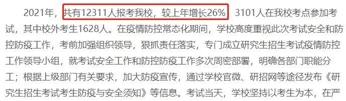文中稱(chēng):2021年,共有12311人報(bào)考我校,較上年增長(zhǎng)26%。