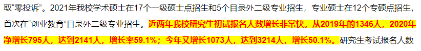 2021年研究生初試報(bào)名人數(shù)又增長(zhǎng)1073人,達(dá)到3214人,增長(zhǎng)50.1%。
