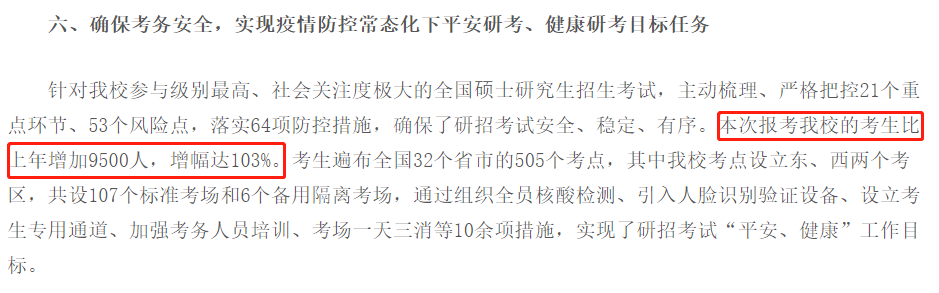 文中稱(chēng):2021年報(bào)考我校的考生比上年增加9500人,增幅達(dá)103%。
